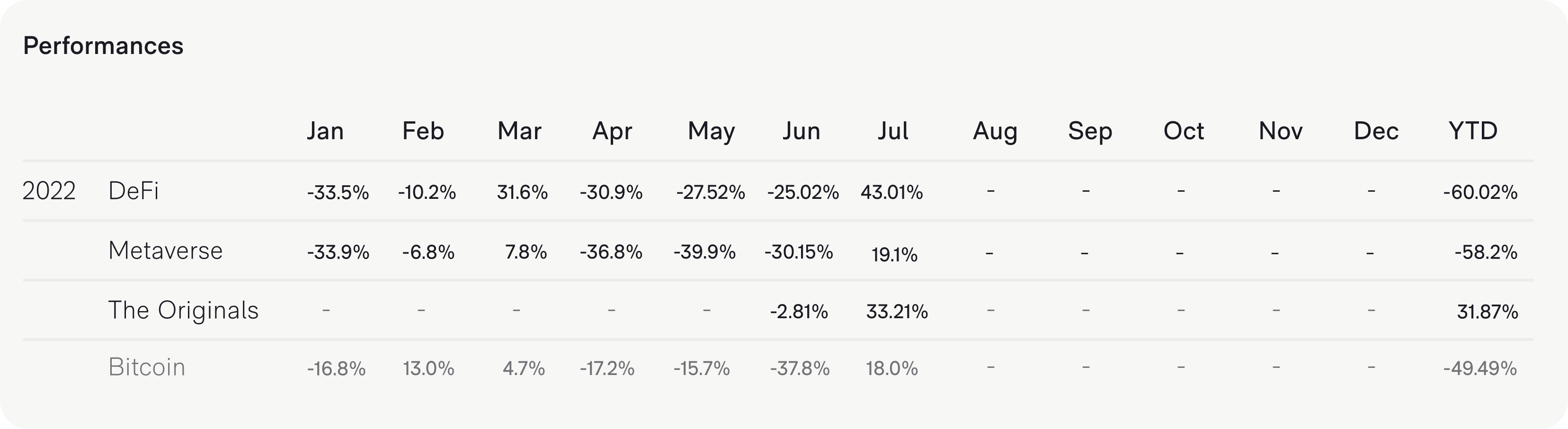 Welcome to the July recap! We've got some exciting updates for you as well as a portfolio performance check-in. As you all likely know, crypto was off to a bit of a rough start to the year, but July had a great bounce back. Months like July show how important it can be to Dollar Cost Average (DCA) even in bear months:
