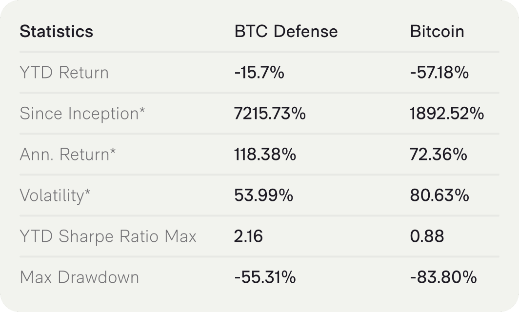 Our BTC Defense strategy continues to kill it this year! We’ve outperformed Bitcoin significantly as you can in our YTD chart here: