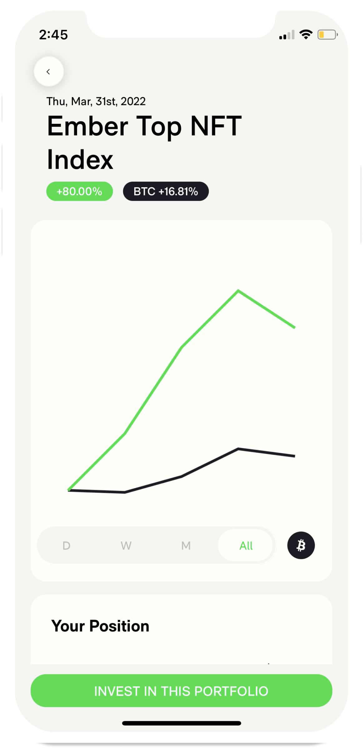 Want to invest in top quality NFTs but don't have hundreds of thousands of dollars? Thanks to our engineering efforts, you can invest in The Ember Top NFT Index with as little as $10 and no gas fees!